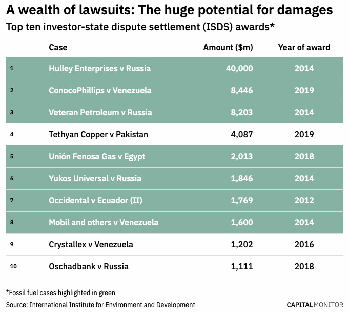 The Energy Charter Treaty, which gives oil and gas companies a route to suing governments, is increasingly hindering climate policy reform, say campaigners. And it is not the only agreement of its type.