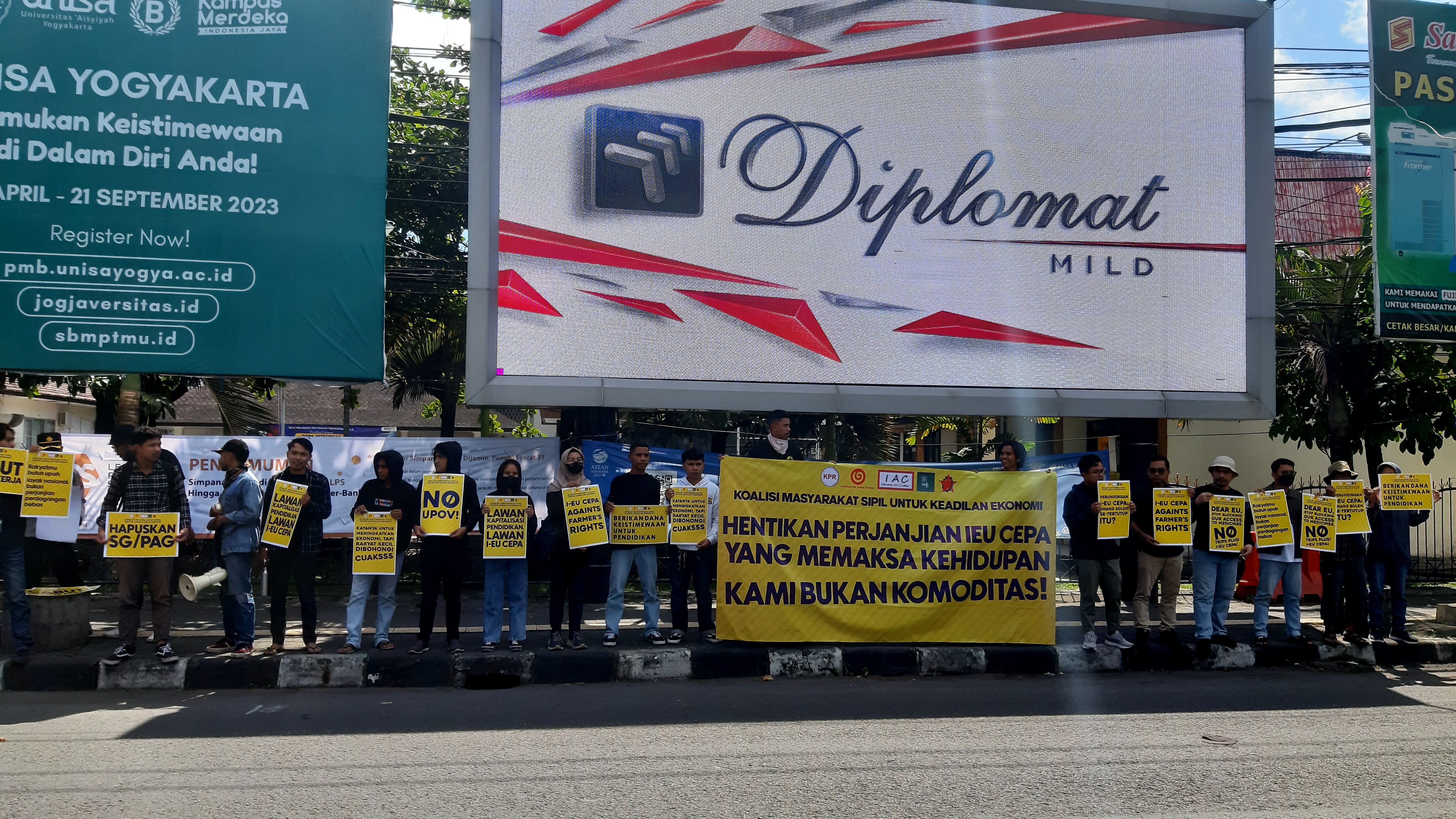 Masyarakat sipil Indonesia menggelar aksi untuk mendesak Komisi Eropa dan Pemerintah Indonesia agar segera menghentikan perundingan Indonesia-EU CEPA karena dalam bentuknya yang sekarang ini mengancam perlindungan hak asasi manusia, keadilan sosial, dan lingkungan hidup yang berkelanjutan, khususnya bagi masyarakat Indonesia.