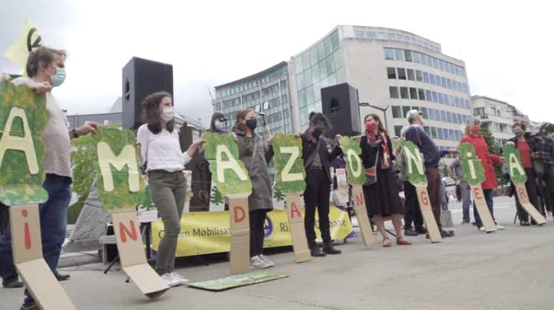 Fridays for Future (FFF), Rise for Climate, Terra Brasil and other climate movements protested in Brussels against the destruction of the Amazon Forest and championed the rights of its indigenous people.