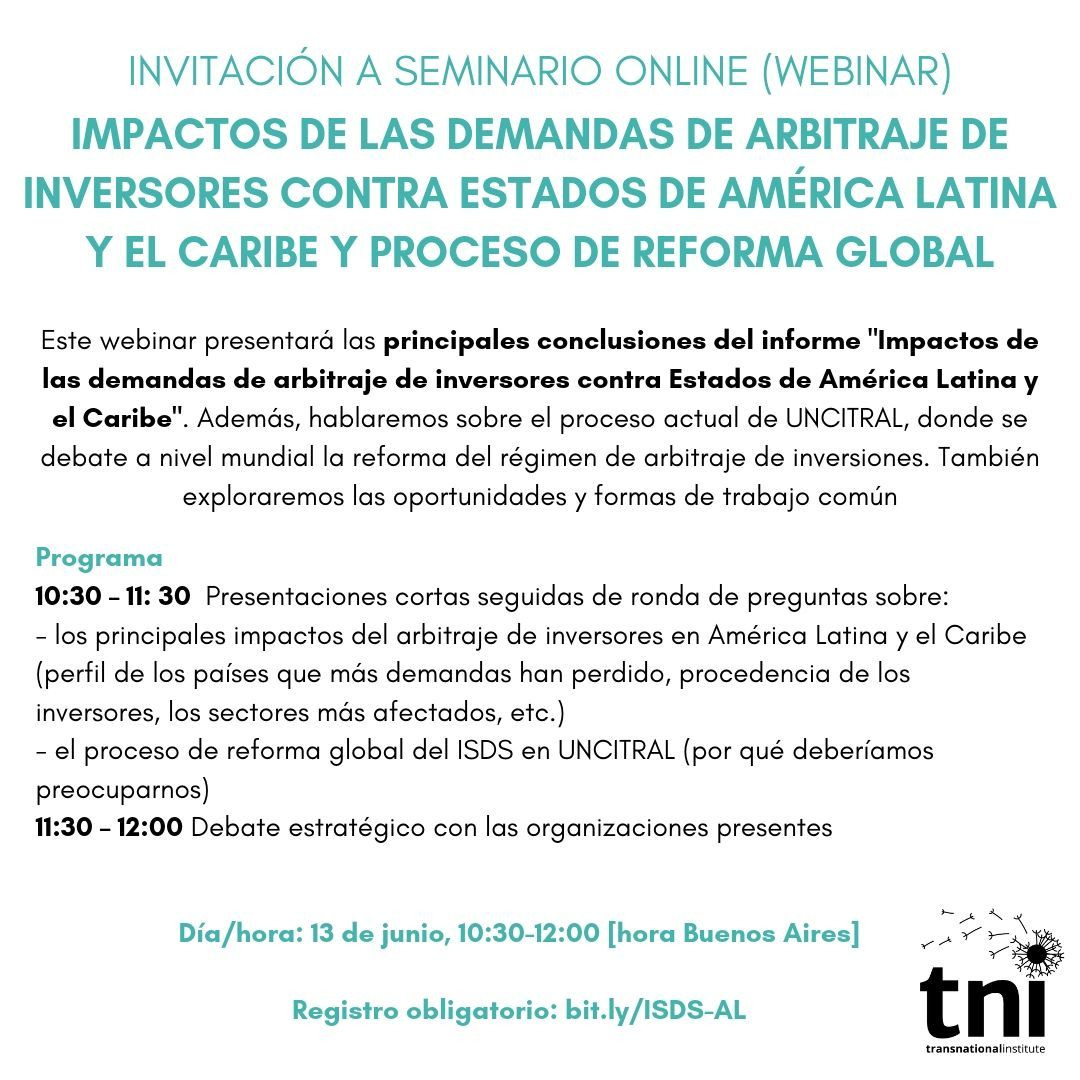 Archives Offline Invitación a seminario online Invitación a seminario online sobre los impactos del ISDS en América Latina y el Caribe el 13 de junio, 10:30-12:00 [hora Buenos Aires]Registro obligatorio aquí Para más info, haga clic aquí jpg/img-20190529-wa0000.jpg (278 KB)