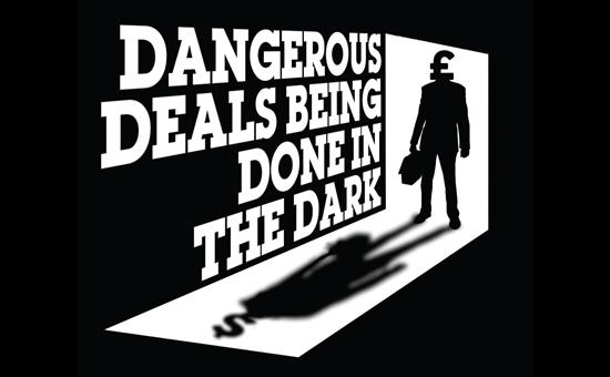 On the demo we’re going to be talking to as many as we can about the campaign, getting our ‘deals in the dark’ petition signed and taking part in a creative stunt posing the question ‘who’s pulling the strings in our trade deals’. If you’d like to take part in the stunt please come dressed in a suit and we’ll provide you with the rest. If you’re not up for the stunt no problem, just come dressed as yourself with any home made placards, campaign t-shirts, noise makers and anything else that you’d usually bring to an event like this. We’ll be providing the ‘deals in the dark postcards’.