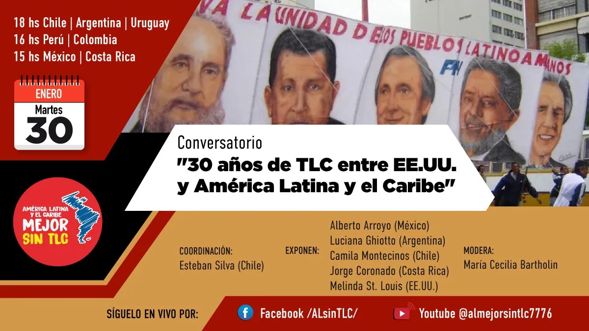 A casi un mes de cumplirse el trigésimo aniversario de la entrada en vigor del primer TLC entre EE.UU. y un país de la región, como fue el TLCAN, se realizó un conversatorio para analizar los impactos negativos de estos instrumentos internacionales.