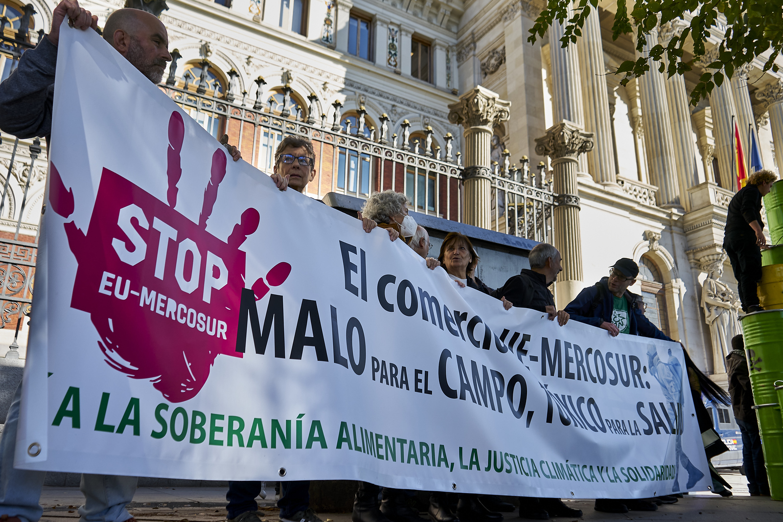 El Toxic Trade Tour, una protesta itinerante por diversas ciudades europeas contra el acuerdo comercial UE-Mercosur, ha hecho hoy escala en Madrid. Desde finales del pasado mes de octubre y hasta finales de noviembre, una coalición de organizaciones sociales y ambientales europeas están llevando a cabo esta protesta por diversos países de la UE para denunciar este acuerdo entre la Unión Europea y los países del bloque del Mercosur.