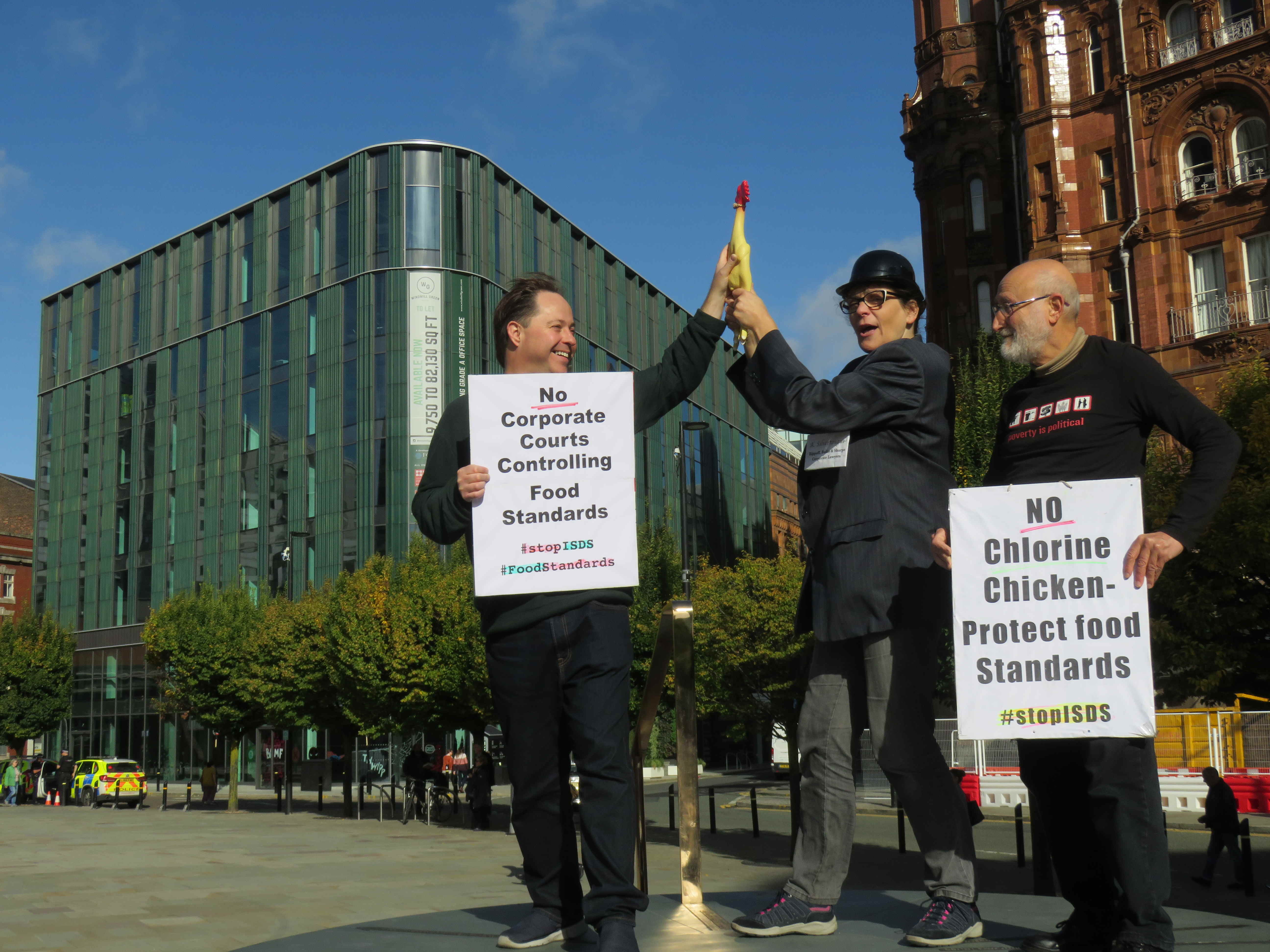 200 years ago, democracy activists died in Manchester, while peacefully campaigning for the vote. On the bicentennial of the massacre, activists protested against the threat to democracy from the corporate court system.