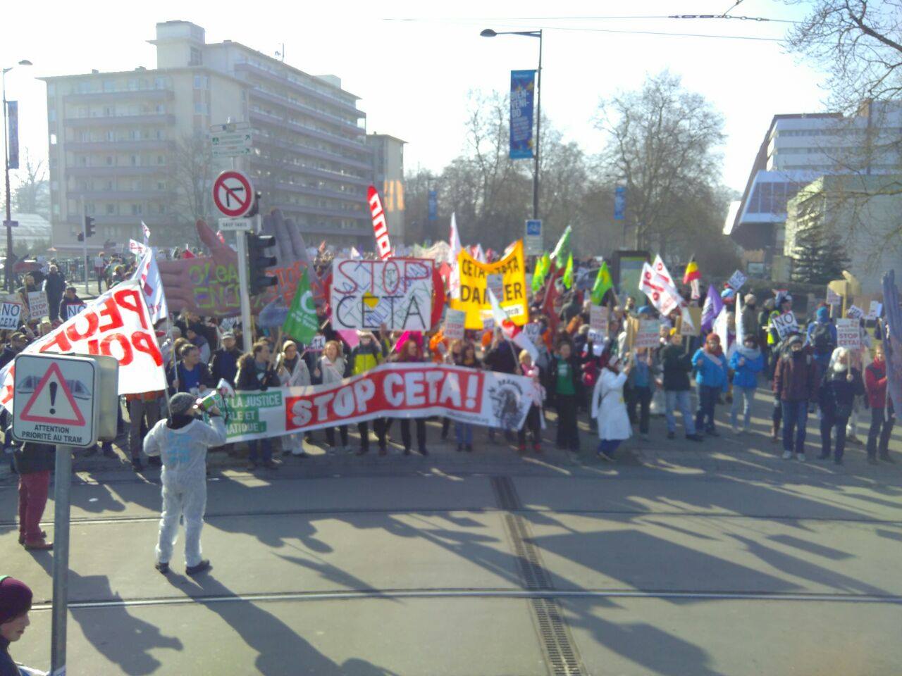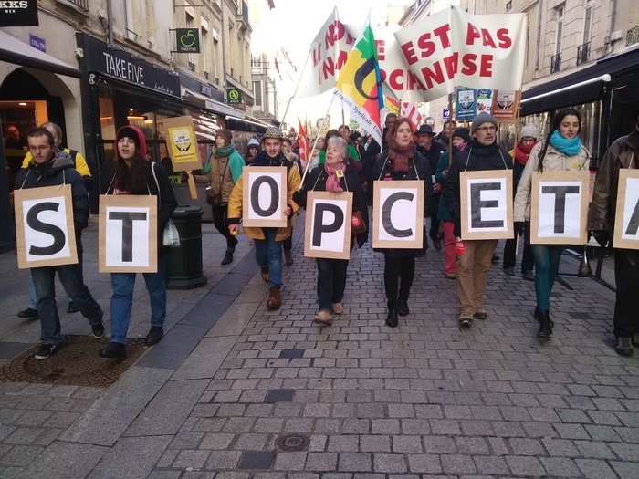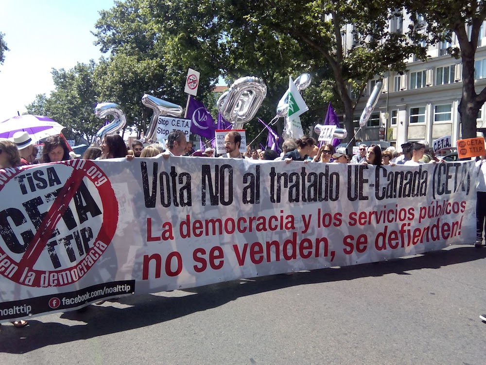 People from over 400 trade unions and social organizations took part in the protest to demand that the Spanish Government block the free trade deal.