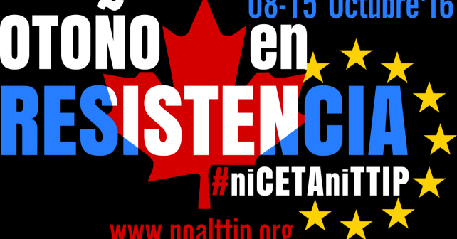 La campaña ‘No al TTIP’ llama a una semana de lucha, desde el día 8 al 15 de octubre, con el objetivo de que el actual Gobierno en funciones no dé luz verde a la aprobación del tratado comercial y financiero entre la Unión Europea y Canadá.