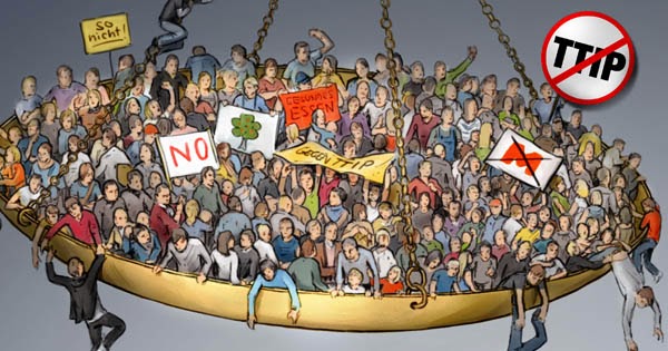 Ahora, existe un movimiento masivo sin precedentes que se opone al TTIP en Europa. Se han establecido las plataformas anti-TTIP en cada uno de los 28 estados miembros de la UE y la Iniciativa Ciudadana Europea auto-organizada contra el TTIP y CETA obtuvieron más de 3,3 millones de firmas solamente en el primer año. Los grupos de trabajo y medio ambiente de EE. UU. también se oponen al TTIP, incluso cuando, en su lugar, el debate en los EE. UU. se ha enfocado más en el Acuerdo Transpacífico (TPP, por sus siglas en inglés). Las negociaciones comerciales entre la UE y EE. UU. realmente se están convirtiendo en un tema político tóxico tanto a nivel nacional como internacional, dado que los ciudadanos reconocen que la lucha por el TTIP es una lucha para nuestro propio futuro.