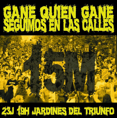 Desde el colectivo 15M Granada, con el apoyo de otras organizaciones sociales de la ciudad y provincia convoca una manifestación el día 23 de junio de 2016 a las 19:00 horas cuyo punto de partida serán los Jardines del Triunfo y que terminará en la Plaza del Carmen. El lema de la manifestación será “gane quien gane seguimos en las calles. Auto-organización ya”.
