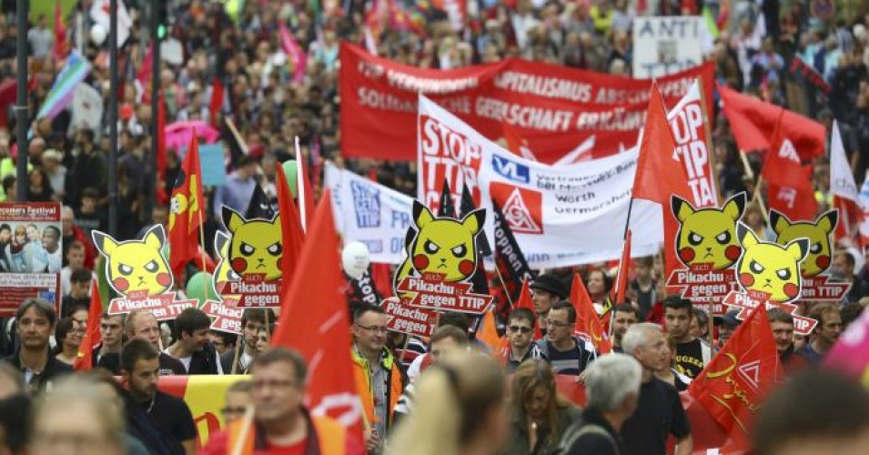Un mouvement sans précédent de contestation contre le TTIP fait maintenant rage dans toute l’Europe. Des plates-formes anti-TTIP ont été établies dans chacun des 28 Etats membres de l’Union. L’initiative citoyenne européenne auto-organisée contre le TTIP et l’accord entre l’UE et le Canada (CETA) a recueilli plus de 3,3 millions de signatures après seulement un an. Des organisations syndicales et environnementales aux Etats-Unis élèvent aussi leurs voix contre l’accord, même si le Partenariat transpacifique (TPP) a jusqu’ici monopolisé les débats de ce côté de l’Atlantique. Les négociations sur le TTIP sont rapidement en passe de devenir un sujet politiquement toxique, tant au niveau national qu’international, les citoyens prenant conscience que le combat contre le traité est un combat pour le futur de chacun d’entre nous.