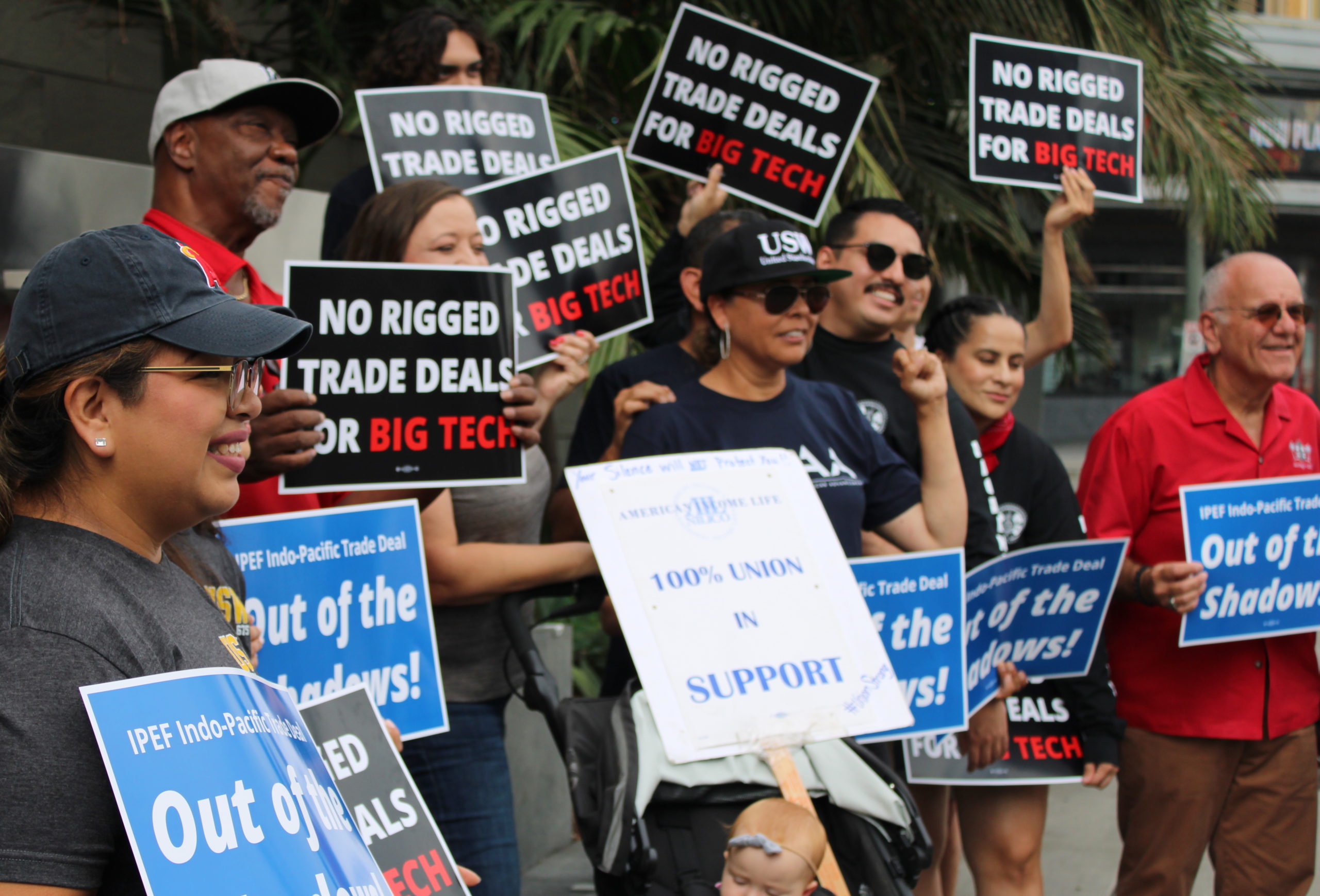 Technology giants are drawing protests as they aggressively try to shape a new US trade deal with Australia, South Korea and other members of the Indo-Pacific region that account for 40% of global economic output.