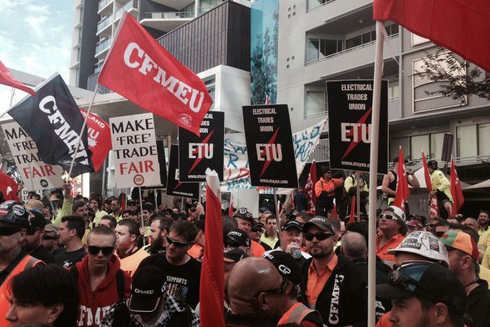 Media barred in Brisbane as unions rally against Chinese free trade agreement