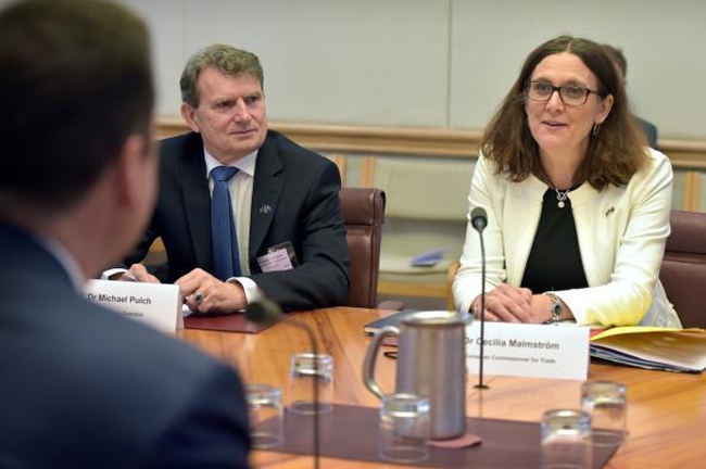 El primer ministro australiano, Malcolm Turnbull, y la comisaria europea de Comercio, Cecilia Malmström, anunciaron hoy en Camberra el inicio oficial de las negociaciones para un tratado de libre comercio (TLC).