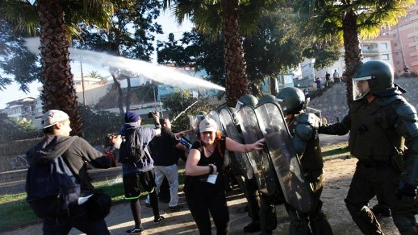 La manifestación pacífica intentaba llegar al hotel Sheraton Miramar pero los carabineros reprimieron la protesta contra el Acuerdo de Asociación Transpacífico (TPP).