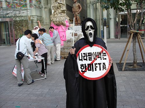The governments of Korea and Japan have come together today, 350km away from Seoul, for their fifth negotiation to consolidate a free trade agreement (FTA) between the two countries. Ever since the negotiations were initiated last December, many NGOs and people's organizations have shown concern over the planned FTA.