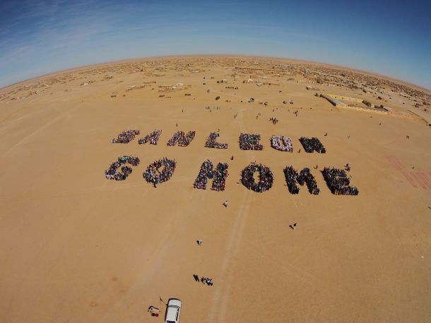 Massive numbers of Saharawi refugees gathered to send a clear message to Irish oil company San Leon Energy which is looking for oil in their occupied homeland: "San Leon: go home".