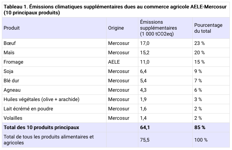 Les émissions provenant de l’augmentation des échanges bilatéraux de 10 produits agricoles clés devraient augmenter de 15 %, si l'accord de libre-échange entre l'Association européenne de libre-échange et le Mercosur est mis en œuvre.