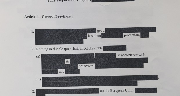 Pendant longtemps, peu d’informations étaient connues sur le traité, si ce n’est quelques résumés des négociations publiés par l’UE et quelques fuites de textes. Le mandat de négociation n’est toujours pas dans le domaine public, mais une fuite en allemand est maintenant disponible.