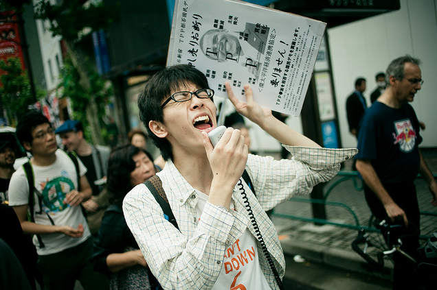 Domestic opposition to FTAs has crystallized around the announcement that the Japanese government intends to join the Trans-Pacific Partnership (TPP.) 2011 and 2012 have seen major demonstrations against the agreement were mounted by Japanese farmers, targeting the undermining of food security which agricultural liberalization under the proposed deal could bring about, especially in relation to rice. Zenroren (National Confederation of Trade Unions) also opposes the deal, with concerns about job losses, the opening up of the economy to US capital, and the erosion of living standards and working conditions. Many Japanese opponents view the TPP as being essentially a bilateral FTA with the US.