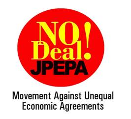 Members of No Deal! JPEPA, Movement Against Unequal Economic Agreements, slammed the effects on agriculture of the Japan-Philippines Economic Partnership Agreement (JPEPA).