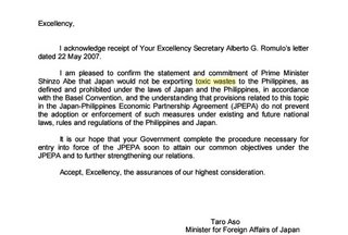 - the fact that JPEPA gives explicit legal ground for Japan to dump toxic wastes in the Philippines.