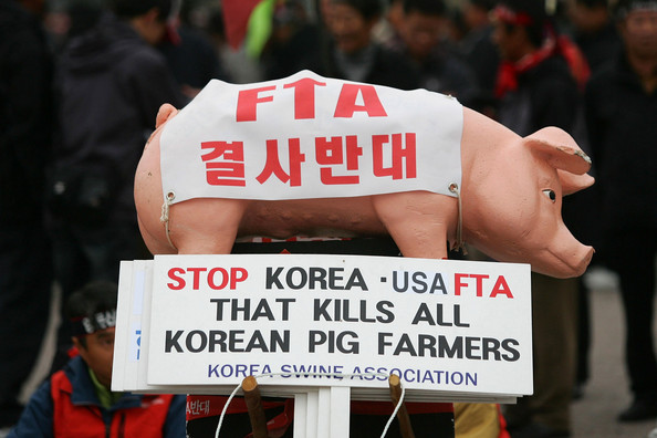 The government of South Korea has concluded, or is pursuing negotiations for, a number of bilateral free trade and investment agreements. Korean social movements have been mobilizing in opposition to these ever since the Korea-Chile FTA was proposed. So far, South Korea has signed deals with Chile (2004), EFTA (2004), Singapore (2005), ASEAN (2007) the US (2007, ratified in 2011), Peru (2011) and Turkey (2012). Talks are under way with Canada, China, Mexico, India, the EU and, technically speaking, Japan. Negotiations with Colombia have stalled over Colombia’s demands for access for better terms for its fruit and flower exports than what Korea gives Chile and Peru. Seoul is also looking to open discussions with Mercosur, Malaysia, Mexico and possibly Israel.
