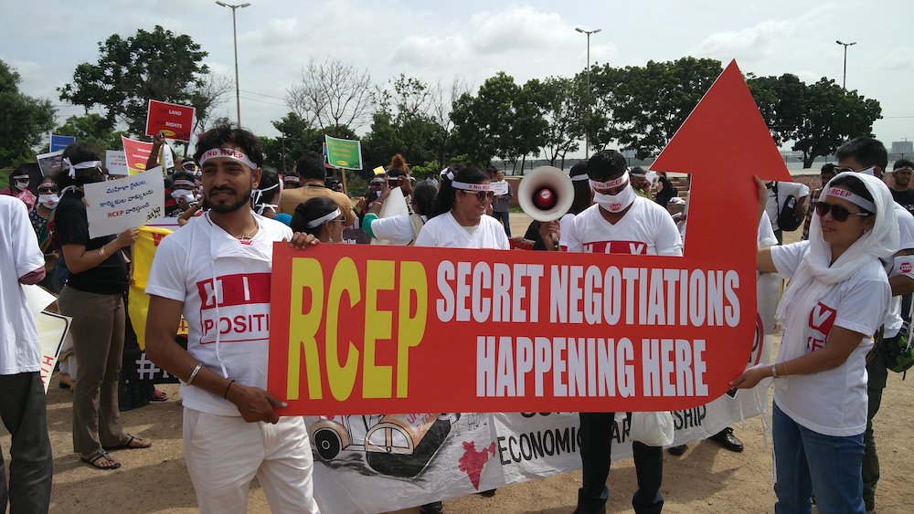 Various movements and organisations, including environmental groups, trade unions, domestic workers, farmers, hawkers, women groups, and people living with HIV have raised their concerns throughout the negotiations and the current ratification process. Thousands of people marched against the trade deal’s harmful provisions, demanding transparency from governments, in Hyderabad, India, in July 2017, and organised a People’s Convention on RCEP.