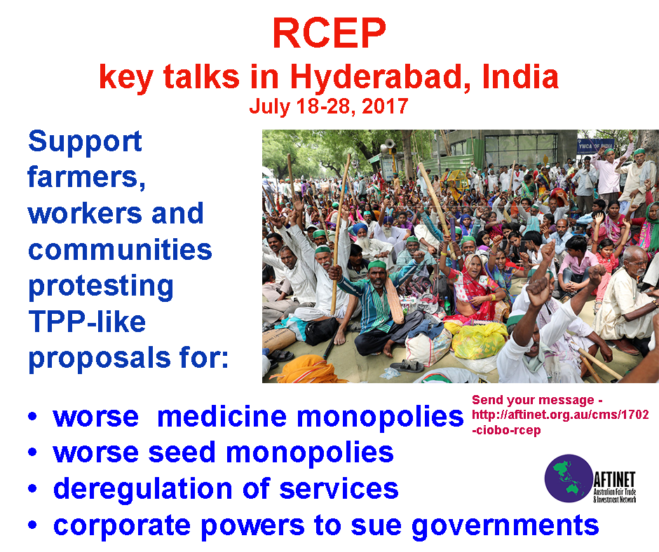 Support farmers, workers and communities protesting TPP-like proposals on seeds, medicines, services and corporate powers to sur governments in Hyderabad!