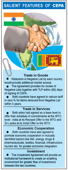 Director General Commerce Department Gomi Senadhira let the cat out of the bag when he told a seminar on the proposed Comprehensive Economic Partnership Agreement (CEPA) last Friday, that it was an agreement which was originally due to have had been signed in 2008 when Indian Premier Manmohan Singh visited the island for the SAARC summit, based on contents already agreed upon.