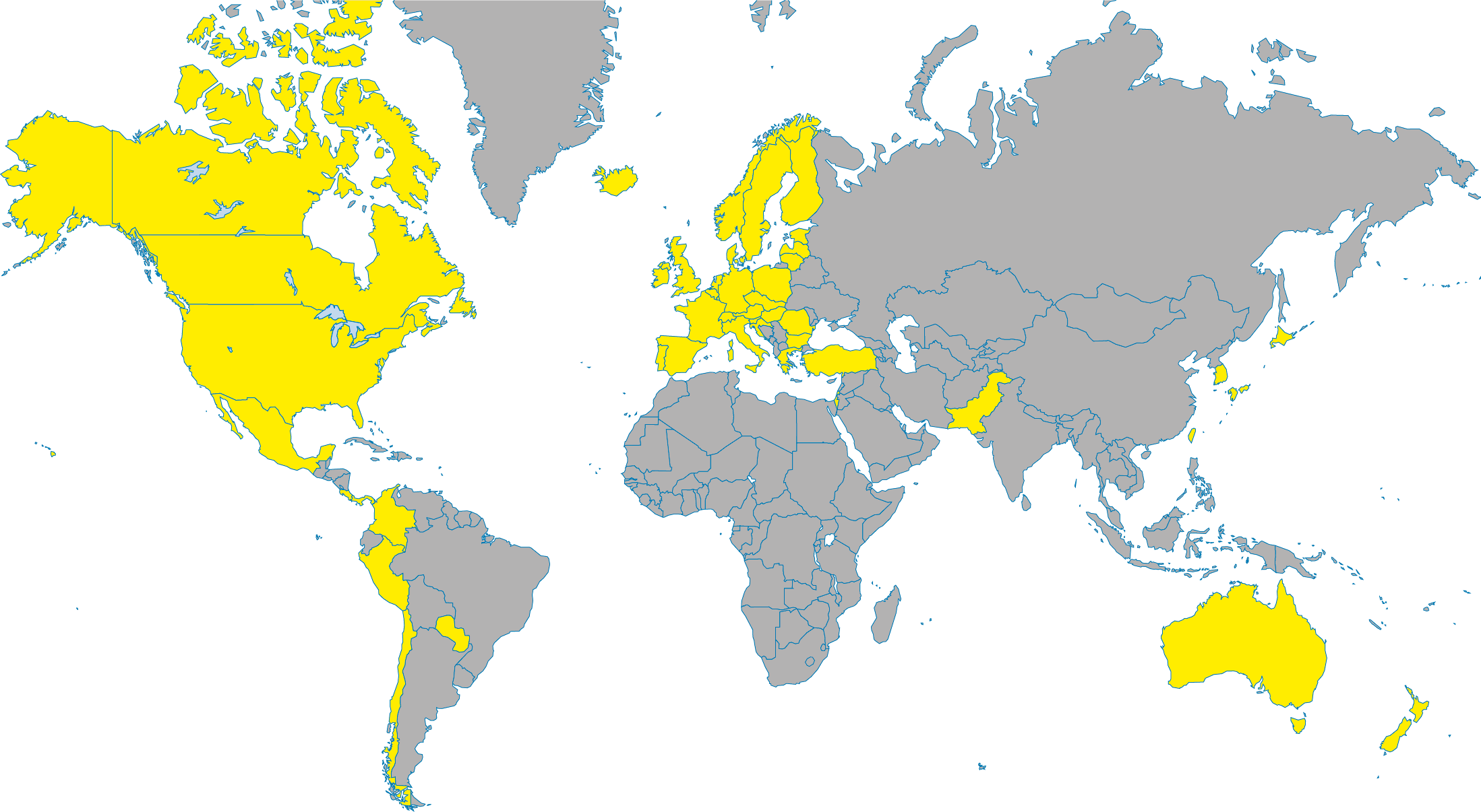 The countries negotiating TiSA are: Australia, Canada, Chile, Colombia, Costa Rica, European Union, Hong Kong, Israel, Japan, Liechtenstein, Mexico, New Zealand, Norway, Pakistan, Panama, Peru, South Korea, Switzerland, Taiwan, Turkey and the United States. These countries account for about two-thirds of global trade in services. However, major world economies such as China, India or Brazil are not present in these negotiations and that the BRICS and ASEAN groupings are not included. In September 2015, Uruguay and Paraguay dropped out of the TiSA negotations, after massive popular opposition to the deal.