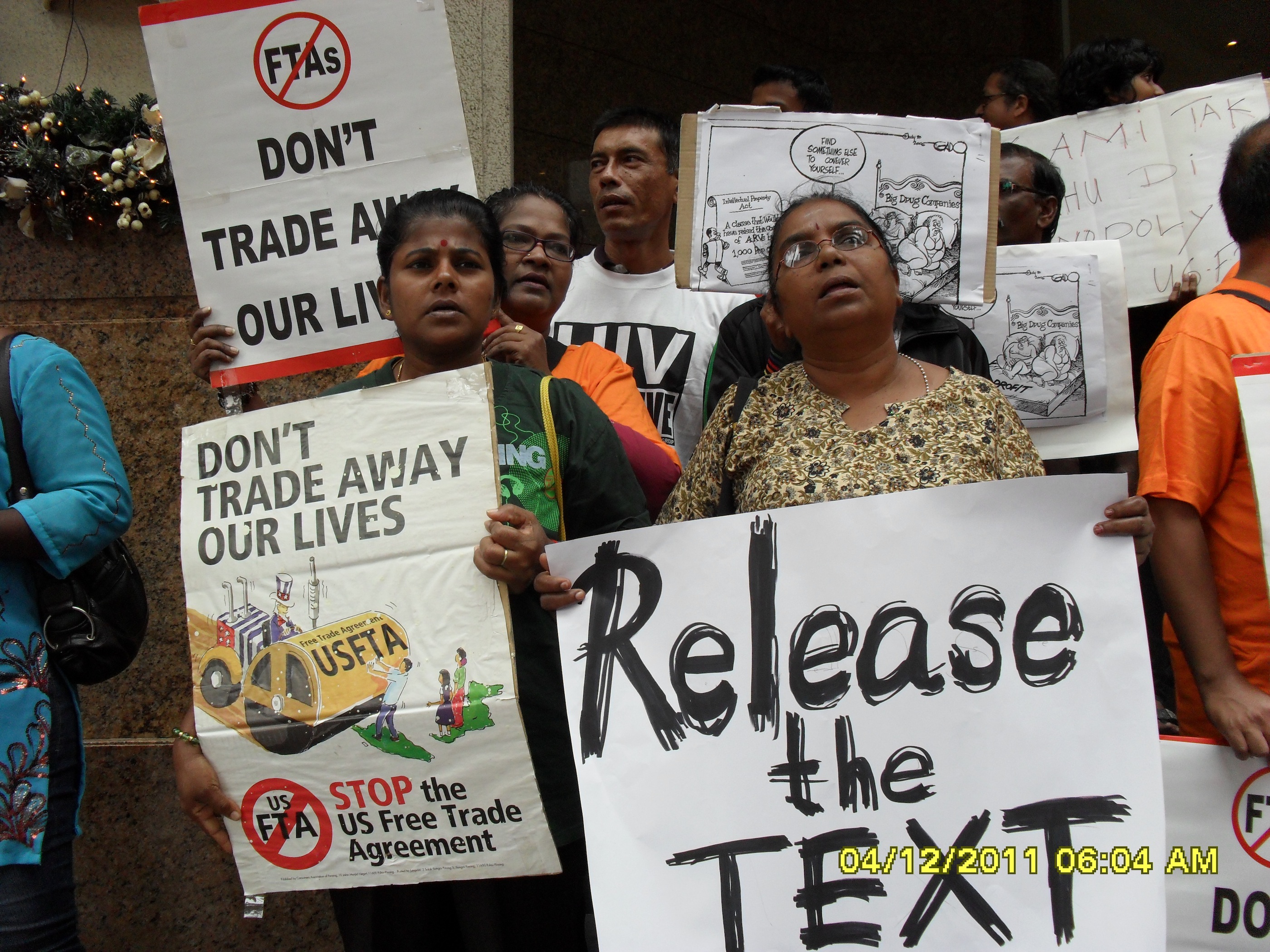 Anti free-trade activists in Kuala Lumpur protested outside the venue where American representatives and Malaysian ministers met to discuss further on free trade agreements between the two nations.