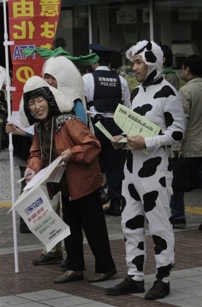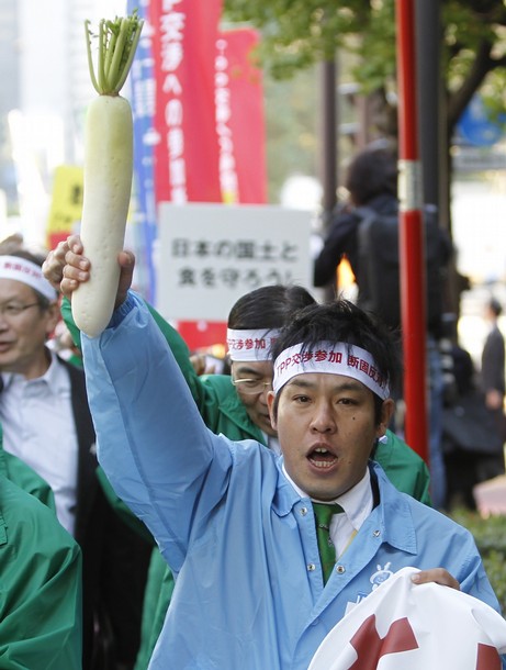 An estimated 3,000 Japanese farmers converged in Tokyo on Wednesday to protest against Japan joining the Trans-Pacific Partnership, or TPP, which would destroy Japanese agriculture and community