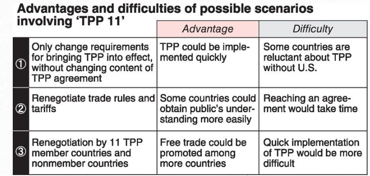 An idea has emerged that the Trans-Pacific Partnership can take effect among at least five nations including Japan, Australia and New Zealand.