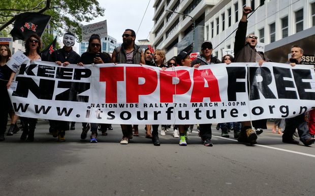 Thousands of New Zealanders turned out in protests across the country Saturday against a Pacific-wide free trade deal claimed to be “selling out” the people’s future.