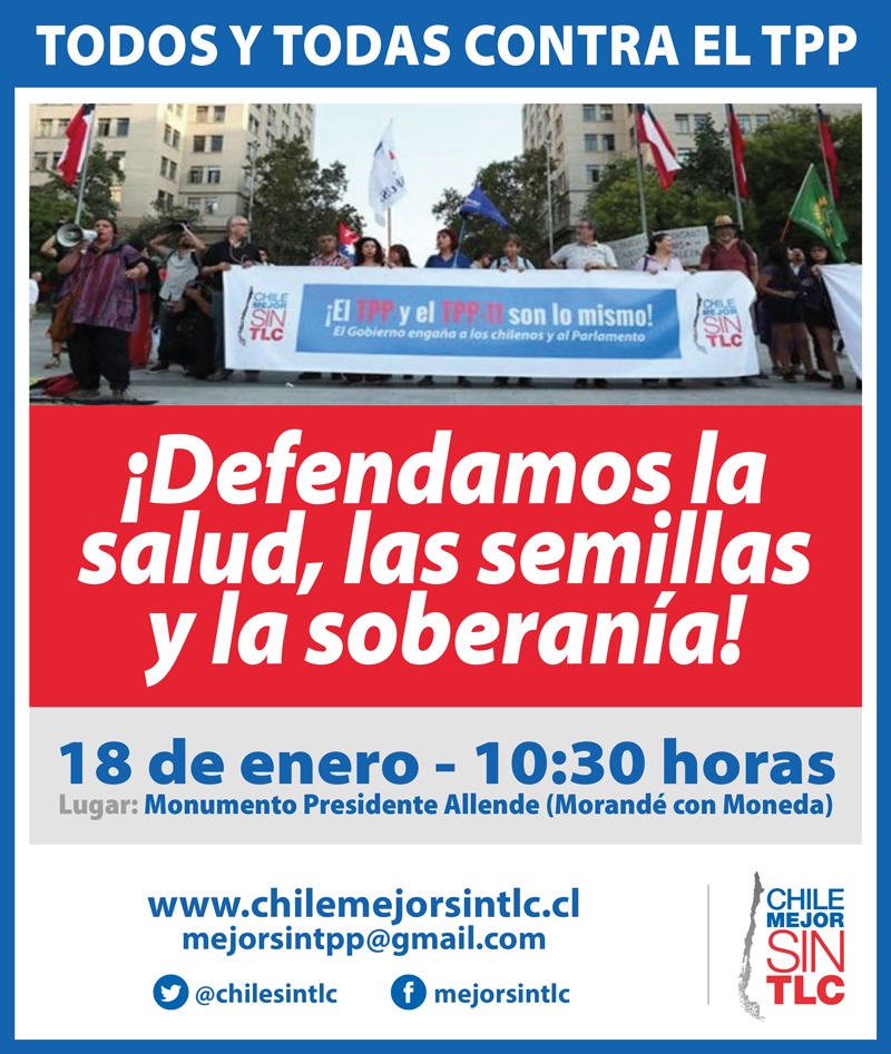Chile - Movimiento por el agua y los territorios llama a manifestarse en contra del TPP-11 el próximo lunes 4 de marzo