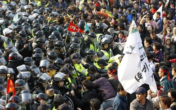 In South Korea, the ruling and opposition parties are now braced for physical clashes over KORUS FTA ratification.