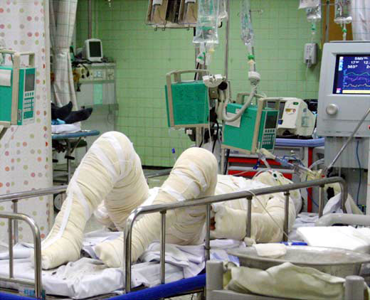 A farmer, 56, who is only identified by his surname, Kim, lies in the hospital after having set himself on fire on June 5, in protest against the US beef import agreement at Seoul City Hall Plaza.