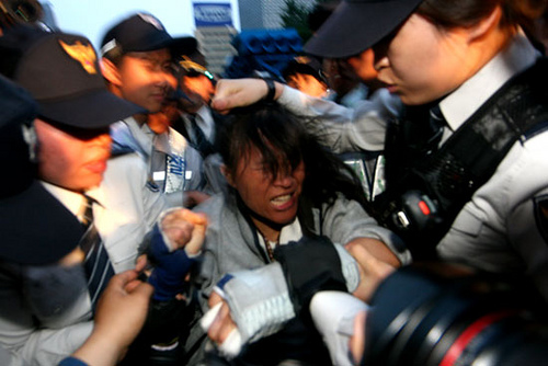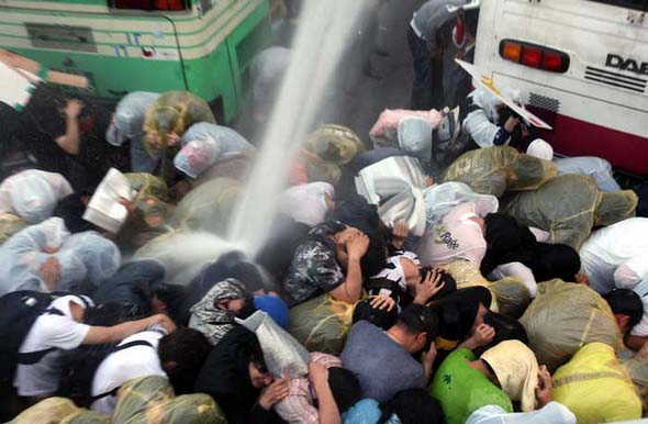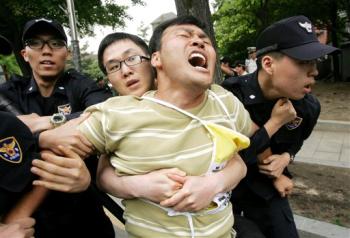 South Korean police's brutal suppression toward ever-growing anti-US beef demonstrations by its citizen became the key issue as the confrontation between police and protesters got more fierce.