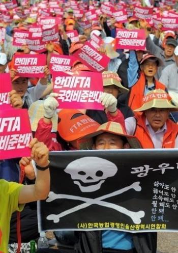The US-Korea free trade agreement (or KORUS FTA, as called in Korea) has been one of the most controversial since NAFTA, if one could measure in terms of social mobilisation. Millions of people have fought against this deal, taking to the streets and flying across the Pacific to try to defeat it.