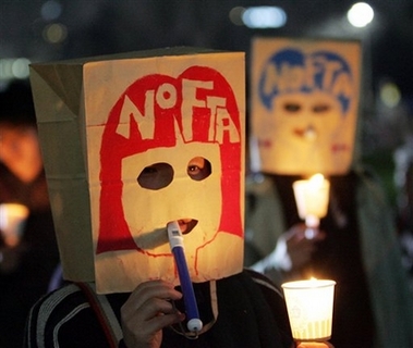 The US-Korea free trade agreement (or KORUS FTA, as called in Korea) has been one of the most controversial since NAFTA, if one could measure in terms of social mobilisation. Millions of people have fought against this deal, taking to the streets and flying across the Pacific to try to defeat it.