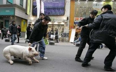 S Korean farmers use animals to oppose US FTA