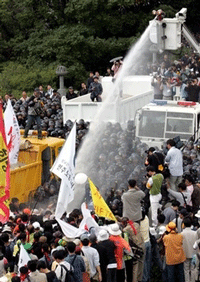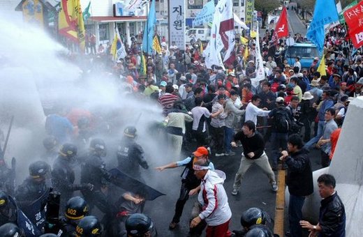 Anti-FTA protesters clash with riot police in Jeju