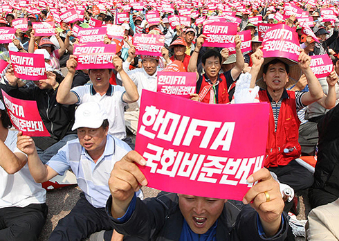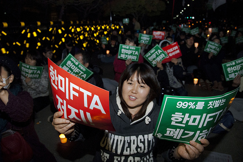 The US-Korea free trade agreement (or KORUS FTA, as called in Korea) has been one of the most controversial since NAFTA, if one could measure in terms of social mobilisation. Millions of people have fought against this deal, taking to the streets and flying across the Pacific to try to defeat it.