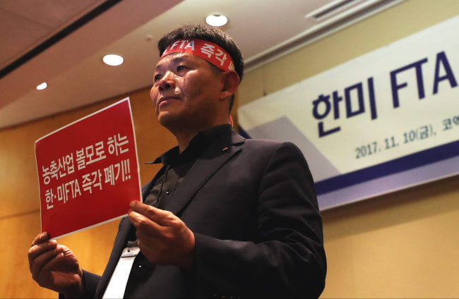 Korean farmers expressed concern about potential revisions to the Korea-US free trade agreement, arguing that opening up the market to American imports, especially beef and fruit, would harm the local industry.