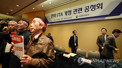 Angry protesters disrupt public hearing on KORUS FTA
