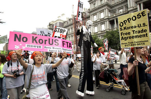 The US-Korea free trade agreement (or KORUS FTA, as called in Korea) has been one of the most controversial since NAFTA, if one could measure in terms of social mobilisation. Millions of people have fought against this deal, taking to the streets and flying across the Pacific to try to defeat it.