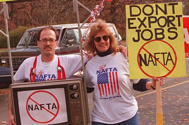 NAFTA was also criticized for boosting low wage and working conditions jobs, especially along the US-Mexico border, where over 3,000 maquiladoras employ over a million Mexicans, mostly women who earn about US$5 a day.