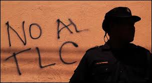 El TLCAN, calificado de “sentencia de muerte” para los campesinos y pueblos indígenas mexicanos, ha provocado una resistencia fuerte y sostenida de un amplio espectro de la población mexicana. Fue uno de los catalizadores del levantamiento zapatista. Desde que entró en vigor, el maíz barato subvencionado de los Estados Unidos inundó el mercado mexicano, vendido a precios por debajo del costo de producción, con lo cual los campesinos no pueden competir. Casi dos millones de empleos se perdieron en el sector agrícola en el TLCAN durante los primeros diez años: esto ha llevado a desplazamientos masivos, pobreza y hambre.