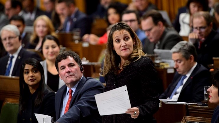 La ministre des Affaires étrangères Chrystia Freeland a présenté à la Chambre des communes ce qu'on appelle une « motion de voies et moyens », qui ouvre la voie à la présentation officielle d'un projet de loi.